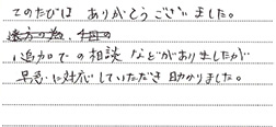 追加での相談などがありましたが、早急に対応していただき助かりました。