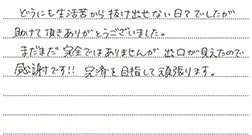 女性30代どうにも生活苦から抜け出せない日々でしたが、助けて頂きありがとうございました。