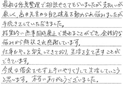 手続きが完了し、大変満足し感謝しております。