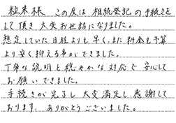 女性粒来様 この度は相続登記の手続きをして頂き大変お世話になりました。